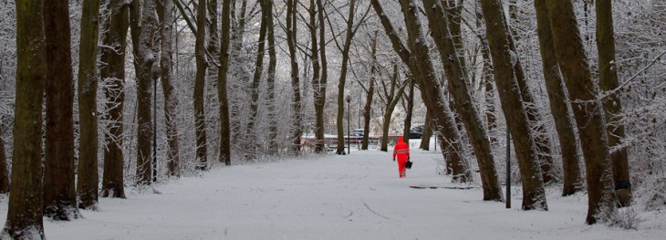 Foto ini diambil dengan suasana sekelilingnya sebagai acuan. Saat itu salju telah selesai turun dan saya berjalan di taman Malou menikmati indahnya kebekuan. Di jalan dengan pagar-pagar pohon gundul ini secara visual sudah menjadi frame yang menarik, tinggal saya menunggu apa point of interestnya.