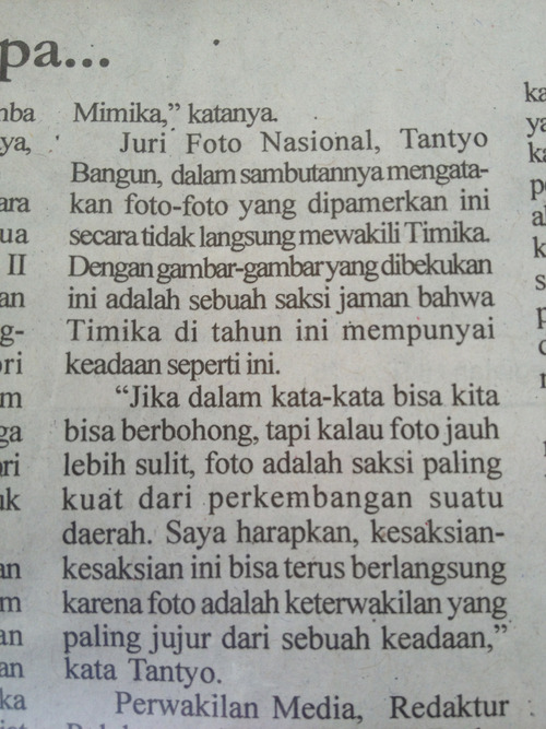 Last week I’m honored to get involved on the formation of Pewarta Foto Indonesia, Timika, Papua. Photos, in the land of “prosperous but suspicious” like Papua, are like oasis in the situation overwhelmed with dishonesty and exploitations. Photos may serve as “truth bearer”, brought both visual esthetic and message in the frozen moment.