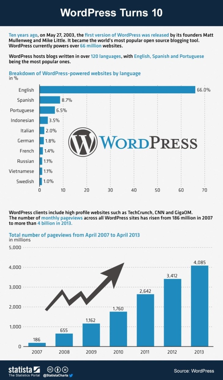 Indonesia di posisi ke 4 di dunia sebagai pengguna WordPress sebagai platform pengembangan website. Persentasenya 3,5% alias 2,31 juta website dari total sekitar 60 juta website berdasar WordPress di seluruh dunia.